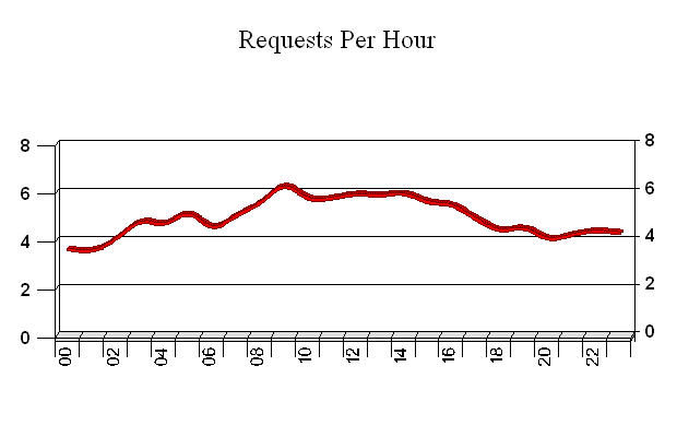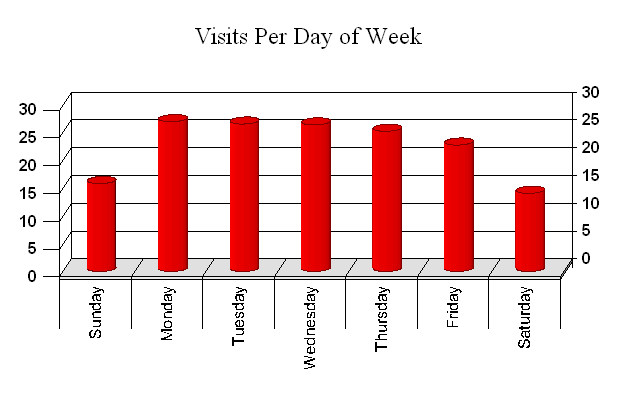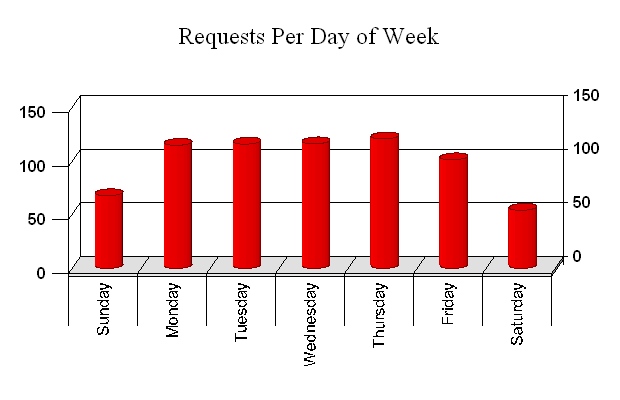 Shows the number of requests and visits in a typical week. See 'Average Requests and Visits by Day of Week' for statistics for each individual day of the week.