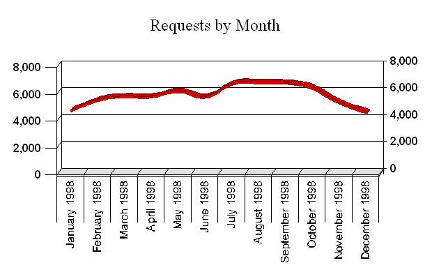 Shows the number of requests and visits in a typical month.